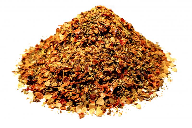 Kořenící směs obsahuje mořskou sůl (max. 35 %), drcený kmín, drcenou papriku, granulovaný česnek, citronovou kůru, kurkumu, tymián, cibuli a čtyřbarevný drcený pepř.