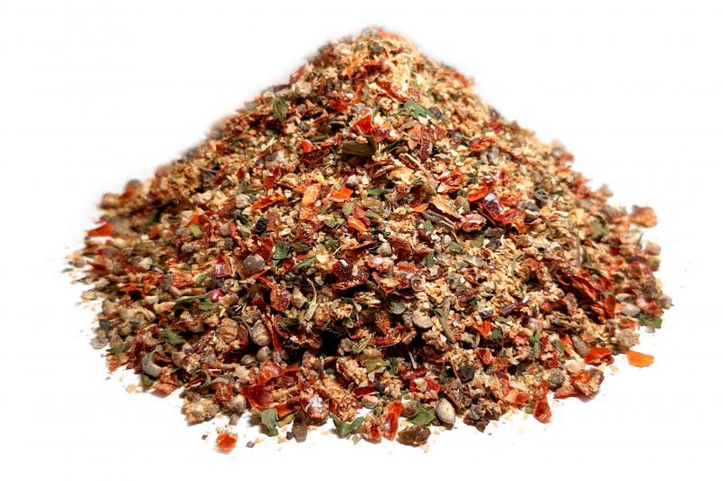 Kořenící směs obsahuje sůl (max. 5 %), česnek, drcenou červenou papriku, cibuli, černý pepř, bílý pepř, drcenou zelenou papriku, zelený pepř, červený pepř, petržel a tymián.