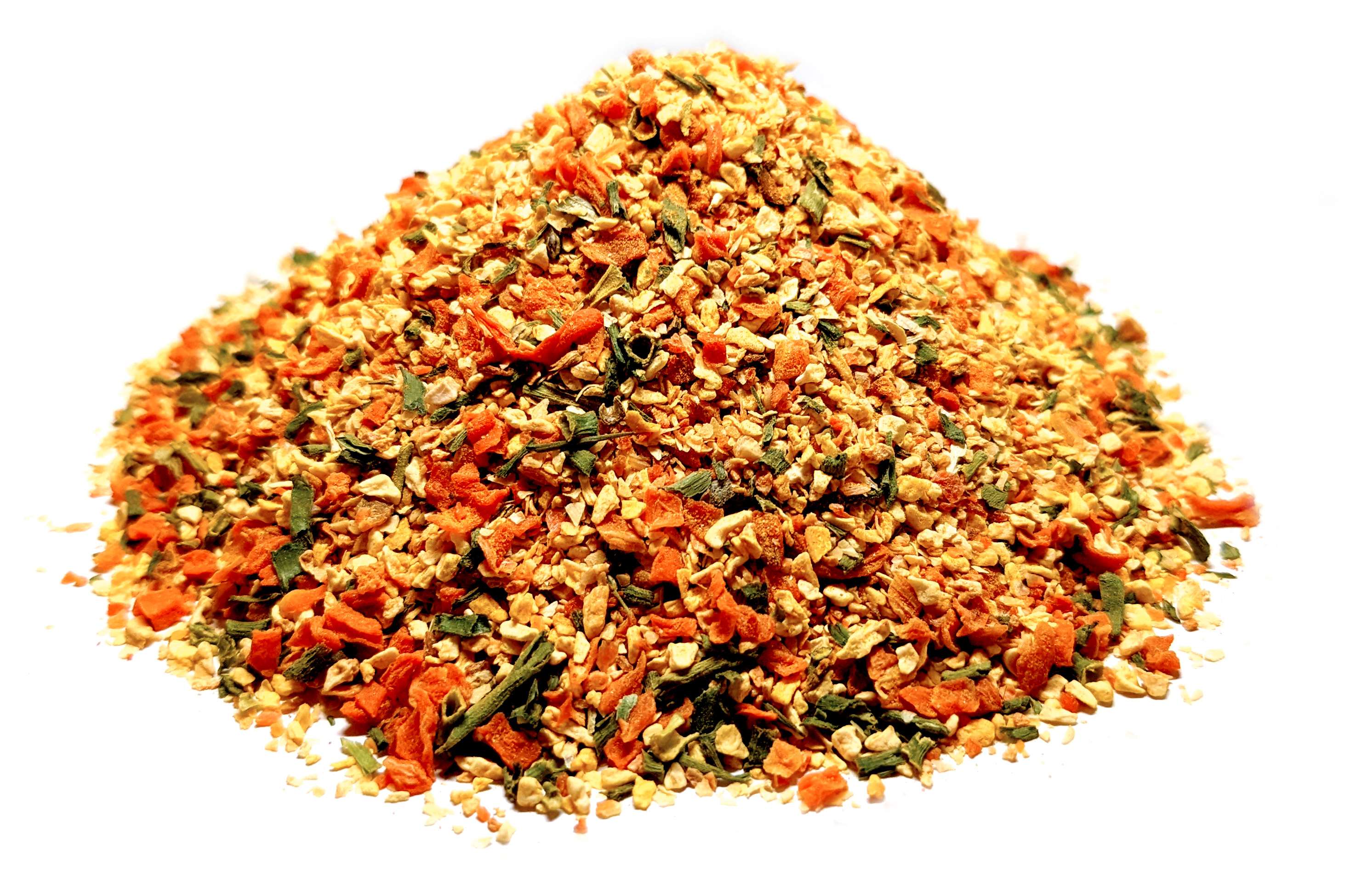 Kořenící směs obsahuje sušenou mrkev, pastinák, cibuli, pažitku a kurkumu.