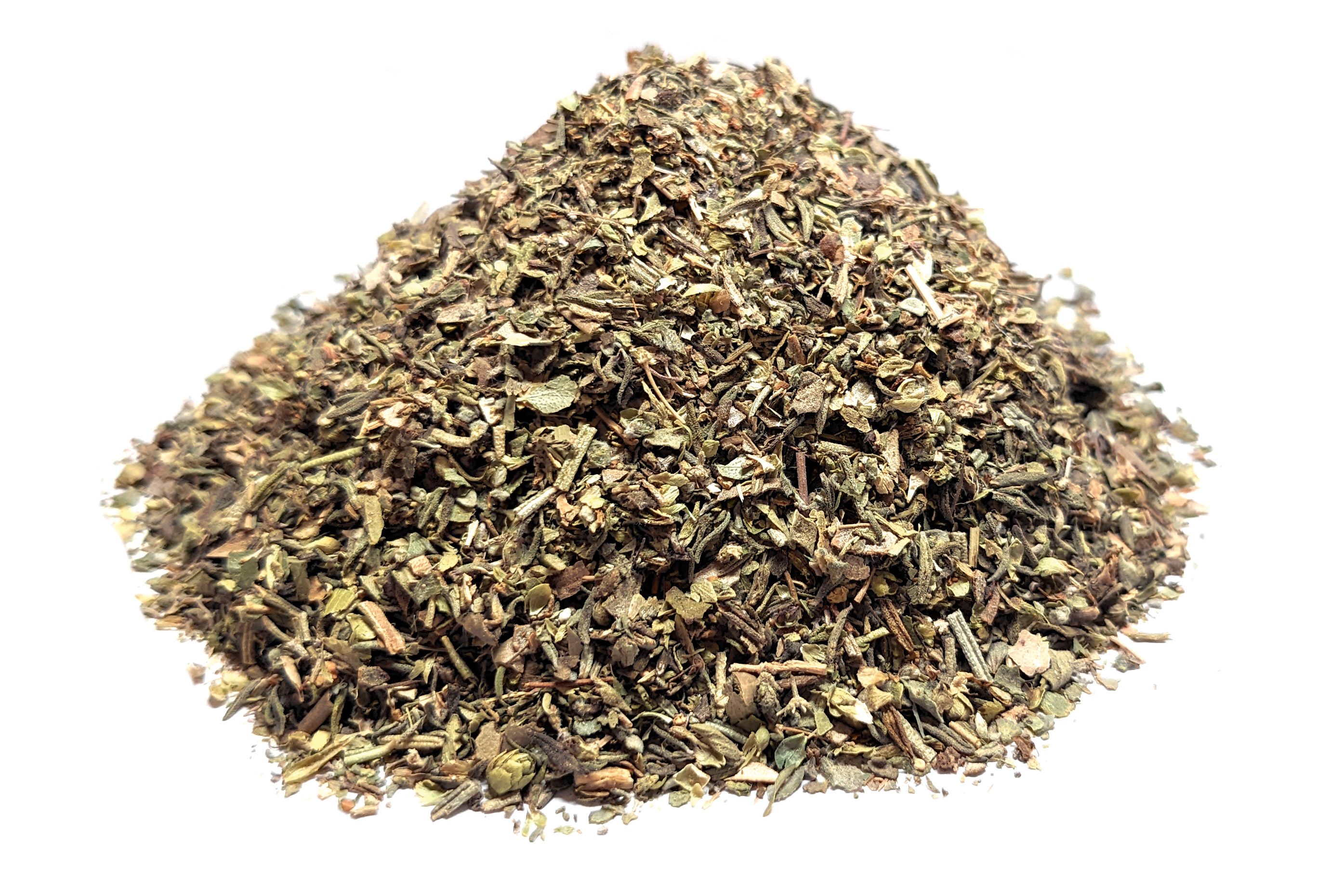 Kořenící směs obsahuje majoránku, tymián, oregano a rozmarýn.