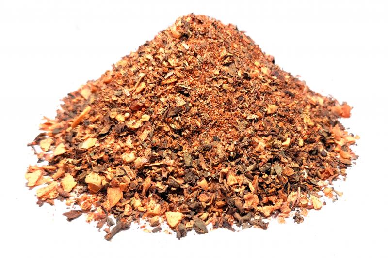 Kořenící směs obsahuje sůl (max. 39 %), česnek, cibuli, bazalku, oregano, kmín, papriku, zázvor, hořčici, šalvěj a chilli.