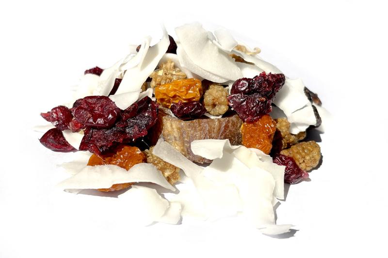 Objavte exotickú zmes sušeného ovocia v našom Ovocnom mixe, ktorý kombinuje goldenberries, figy, datle bez kôstky, kokosové plátky, sušené brusnice a moruše. Ideálny na zdravé m ... viac o Ovocnom mixe
